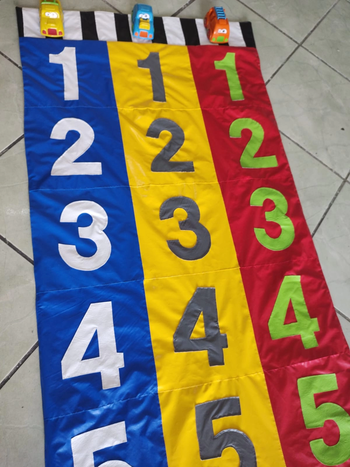 O Tapete "A Corrida" é fabricado em corino. Com uma pista para brincadeiras de carrinhos, cavalos, tartaruga e crianças, que vai promover a interação das crianças durante a brincadeira. Medida 2,90 x 0,80